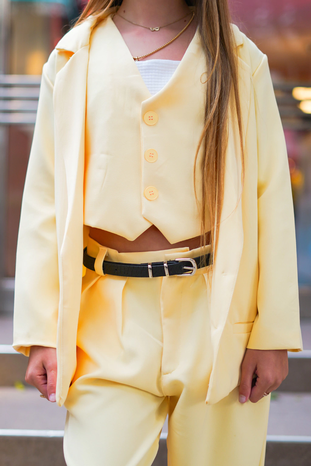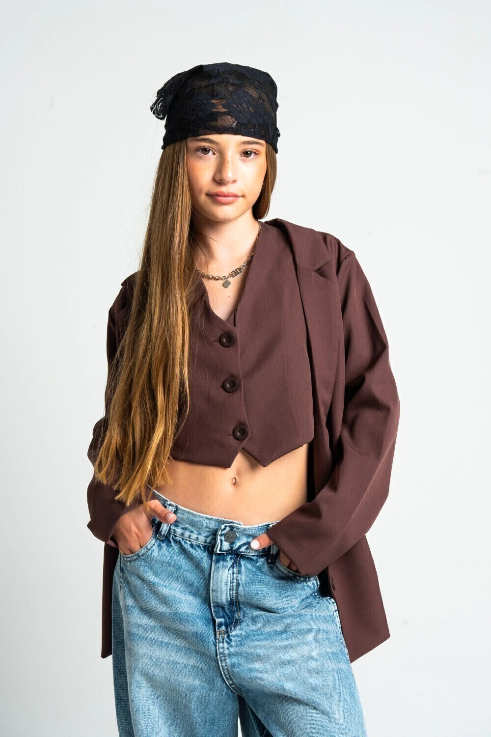 Chaleco sastrero con detalle de boton al tono y forreria interna, corte over clasic. ideal para lucirte en cualquier evento o para combinar de forma urbana.