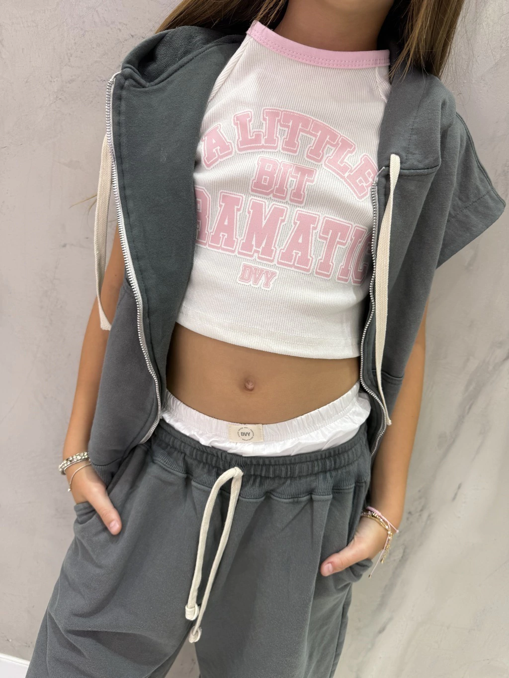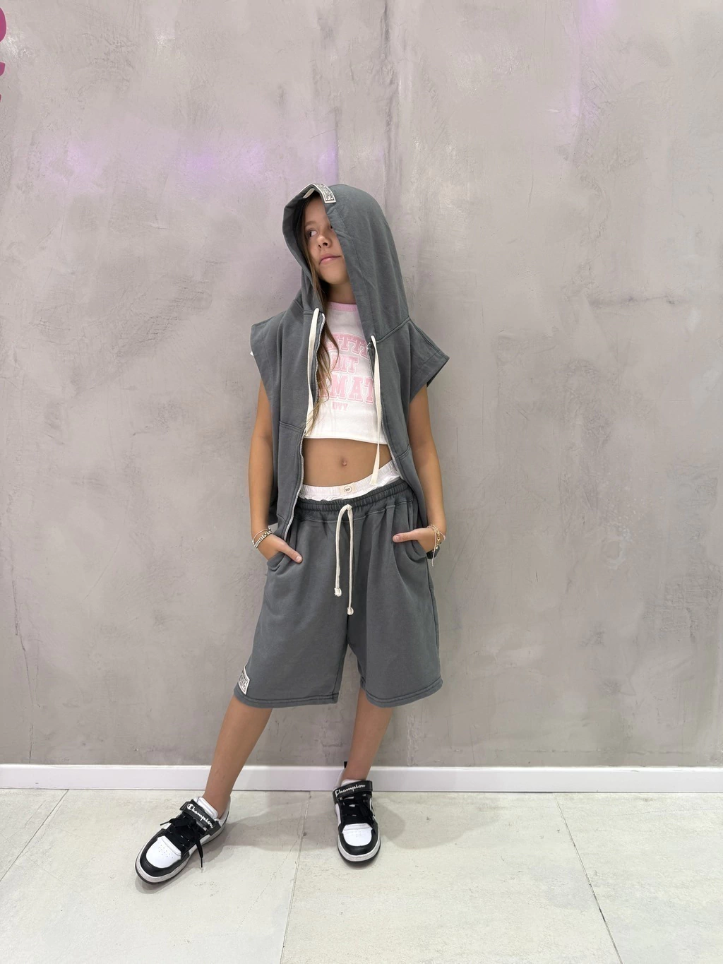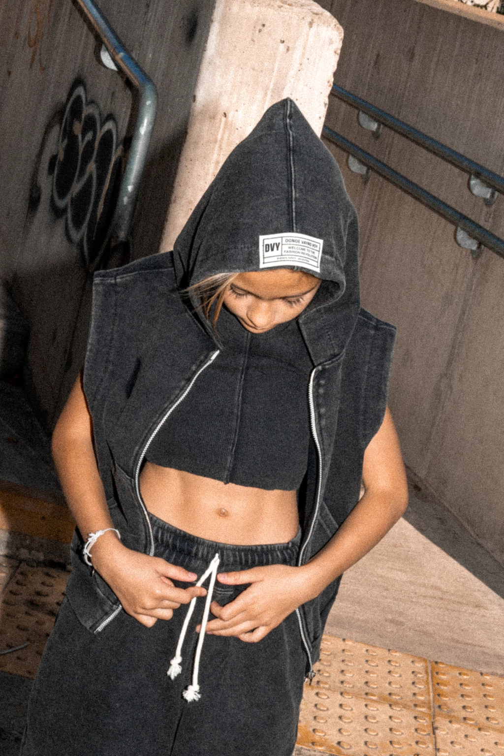 Chaleco de rustico over canguro. La tela se trata de un rustico de algodon peinado con proceso de prelavado para lograr el efecto de desgastado super moderno!'