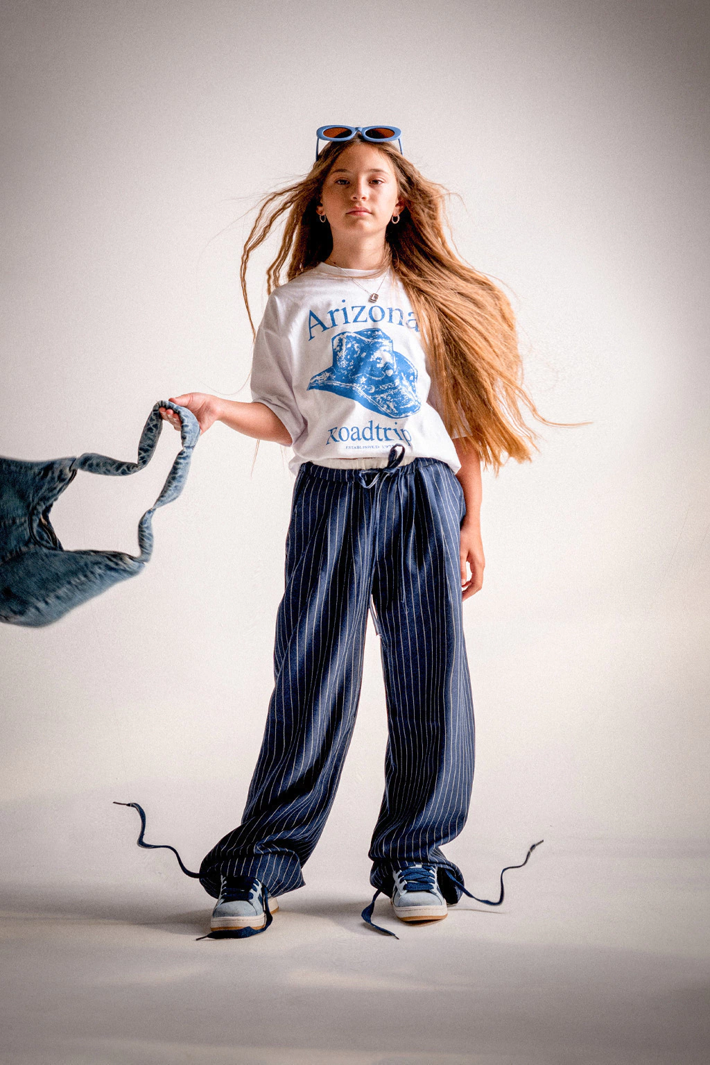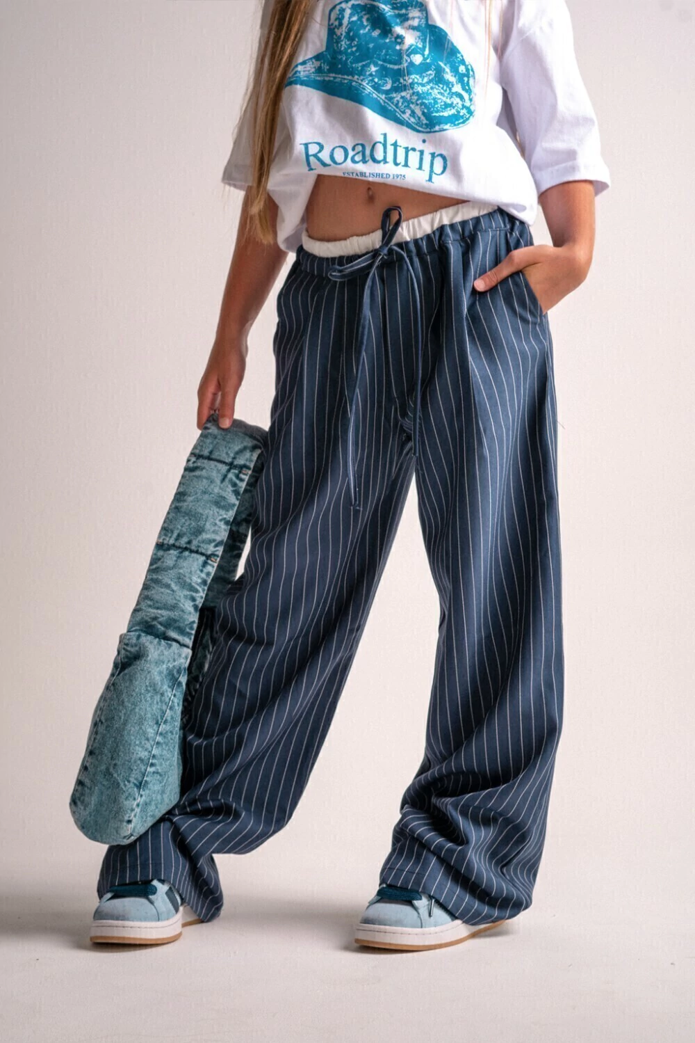 Pantalón sastrero rayado con detalle de cordón y pinzas. Cintura incluida simil boxer por debajo
