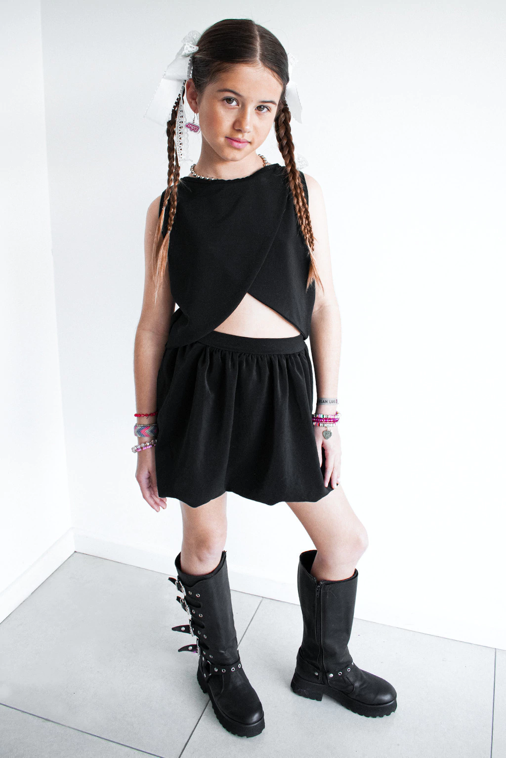 Pollera plana globo con detalle de cierre. Hit 2025